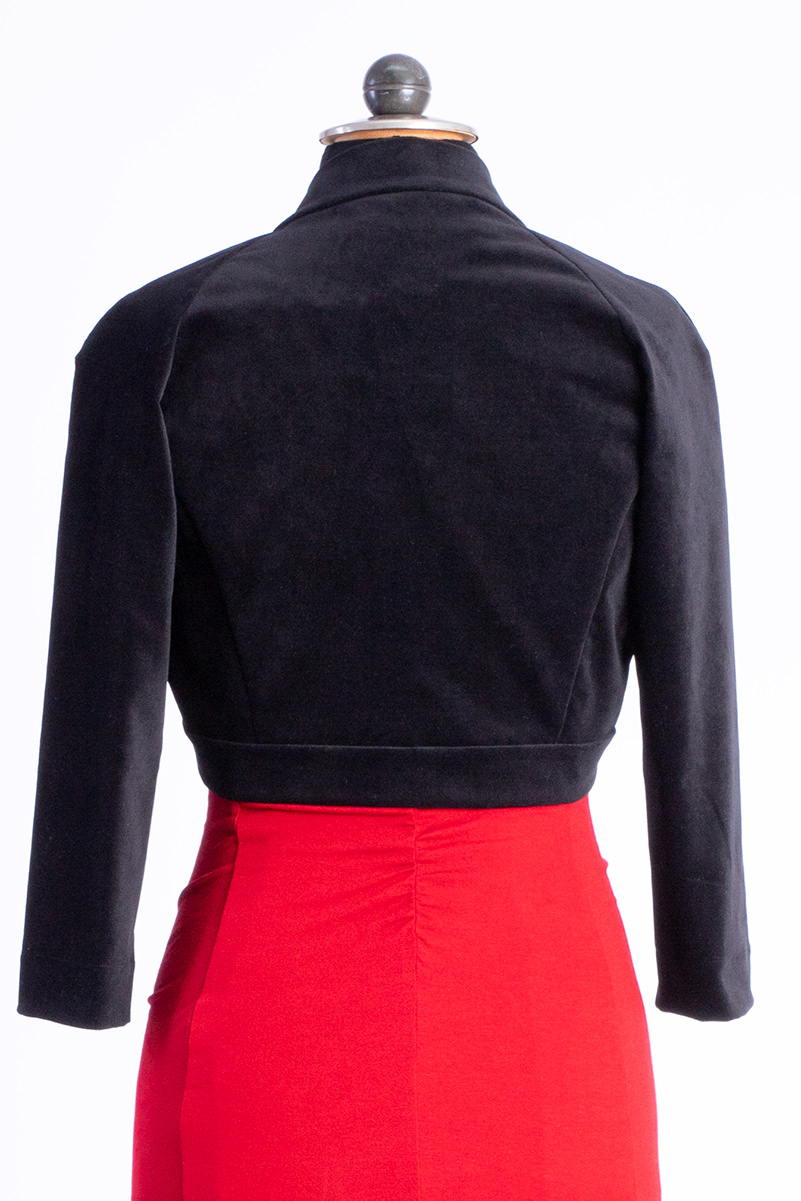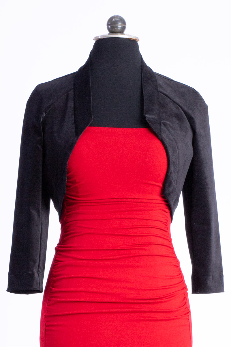 Der Bolero NELE ist wunderbar mit schmalen Jersey-Kleidern kombinierbar und kreiert durch seine schlichte Eleganz ein stilvolles Outfit.