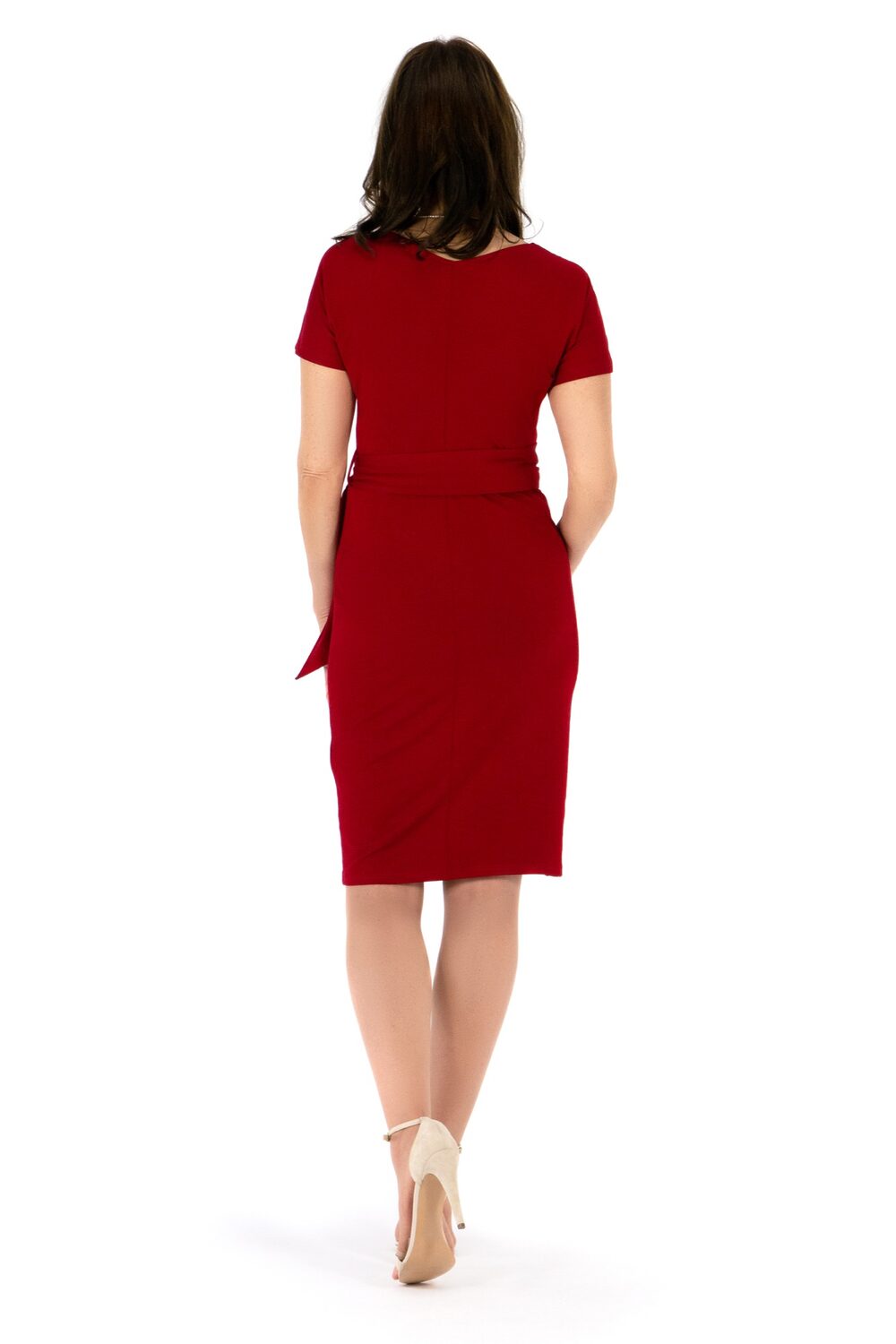 Das Kleid CARLOTTA ist ein sommerlicher Alltagsbegleiter mit schlanker Silhouette. CARLOTTA lenkt den Blick gekonnt auf den schönen Knoten, welcher der drapierten Taillienpartie entspringt. Durch den rückwärtigen Gürtel können Sie die Taillenweite regulieren. Das Kleid hat eine schmale Rockform und ist besonders geeignet für Frauen mit eher gerader Taille. Der V-Ausschnitt hat eine streckende Wirkung, was besonders den in nicht so hoch gewachsenen Frauen schmeichelt. Der Ärmel ist angeschnitten und sommerlich kurz.