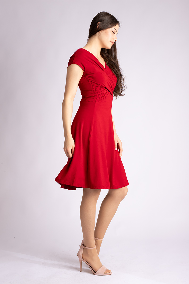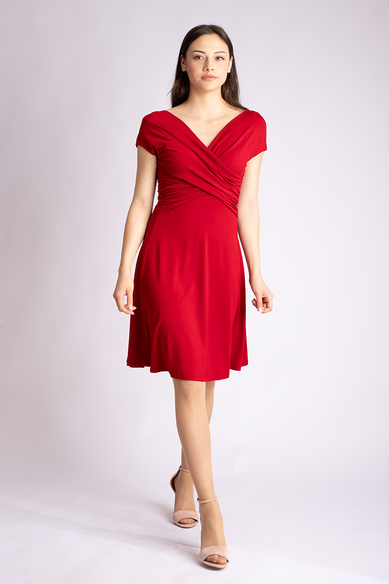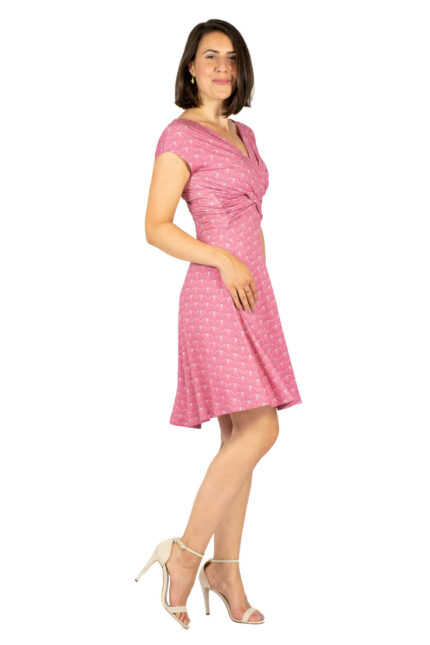 Das Kleid FELICA vereint stilvolle Eleganz mit lässiger Alltagstauglichkeit. Der raffinierte Wickeleffekt im Vorderteil formt eine wunderschöne Taille, während der V-Ausschnitt vorne und hinten variabel ist und sich perfekt an verschiedene Körbchengrößen anpasst. Die sanfte Drapierung schmeichelt jeder Figur und sorgt für eine feminine Silhouette. Der Rock ist großzügig und schwingend, wodurch er die weiblichen Rundungen dezent umspielt und kaschiert. Mit seinen überschnittenen Schultern ist FELICA ideal für sowohl schmalere als auch breitere Schultern und bietet so perfekten Tragekomfort für jeden Anlass. Lass dich von FELICA verführen und genieße die warmen Sommerabende in Stil!