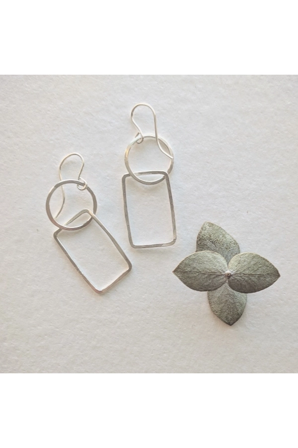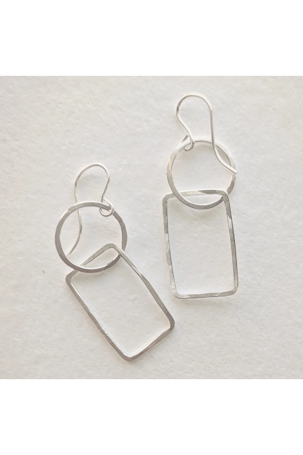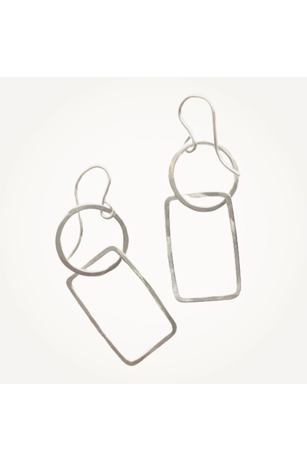 Asymmetrisch und kinetisch, diese geometrischen Ohrringe sind verspielt und einzigartig. Unsere Creolen werden in unserem Schmuckstudio in New Orleans handgefertigt, gehämmert und poliert. Alle Metalle sind aus Sterlingsilber. Die Ohrringe hängen etwa 3,8 cm. ✹ Die Reifen werden in unserem Schmuckstudio in New Orleans von Hand geformt, gelötet, gefeilt, gehämmert und poliert.