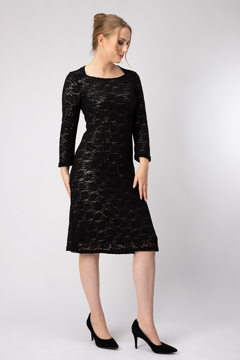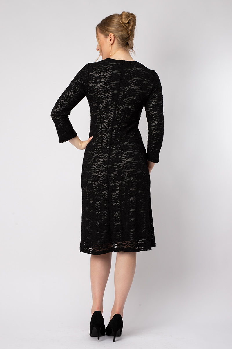 Unser Kleid VIOLETTA ist ein festliches Kleid aus elegantem Spitzenstoff. Es ist komplett gefüttert mit silbernem Viskose Jersey.